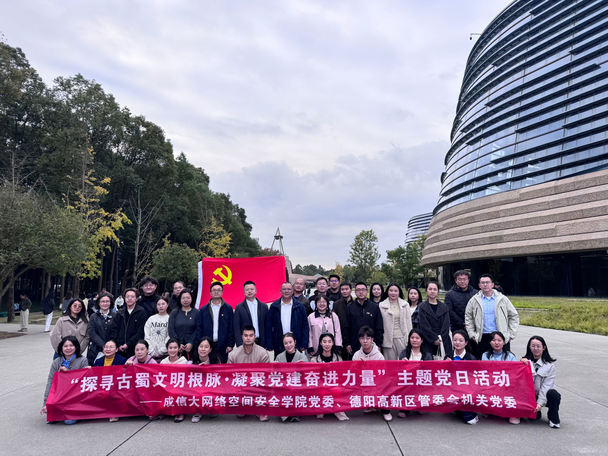 为深入学习贯彻习近平新时代中国特色社会主义思想,巩固拓展主题教育成果,传承弘扬中华优秀传统文化,增强党支部党员文化自信与历史使命感,提升支部凝聚力战斗力,11月7日,网络空间安全学院党委与德阳高新区管委会机关党委联合开展“探寻古蜀文明根脉·凝聚党建奋进力量”主题党日活动,学院组织党员教师走进德阳三星湖与三星堆博物馆,在历史与现实的交融中汲取精神力量。