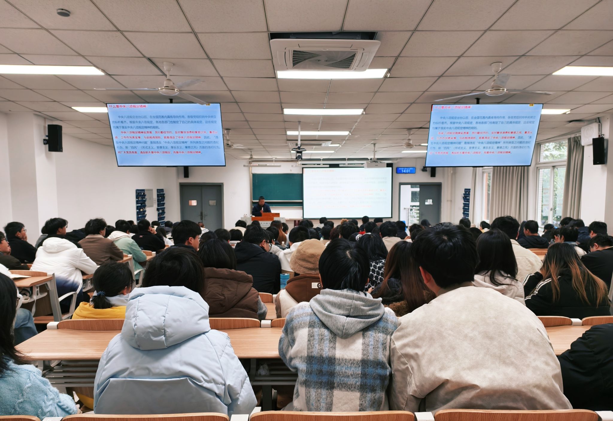 课堂伊始,舒红平带领同学们系统学习中央八项规定精神。他结合鲜活案例,深入浅出地阐释了八项规定在加强党风廉政建设、净化社会风气方面的重大意义,引导学生深刻认识到纪律规矩是不可触碰的“高压线”,切实增强了同学们的规则意识与自律精神。