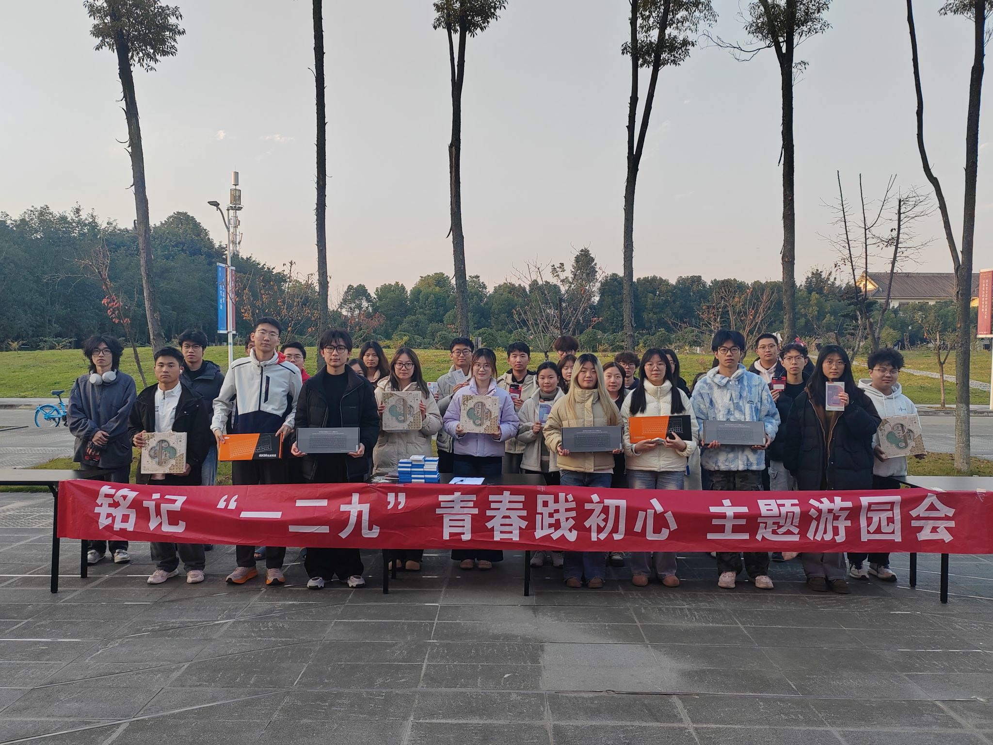 为纪念“一二·九”抗日救亡运动,弘扬爱国主义精神,2025年12月4日下午3时,由成都信息工程大学党委学生工作部主办,网络空间安全学院党委、“网盾育英”名辅导员工作室、网络空间安全学院学生党建服务中心共同承办的“铭记‘一二·九’,青春践初心”主题游园会在学校双中心A座外侧空地举行,活动尚未开始,现场便聚集了不少前来参与的同学,红色主题的宣传展板与指引标识,提前营造出庄重而热烈的红色文化氛围。