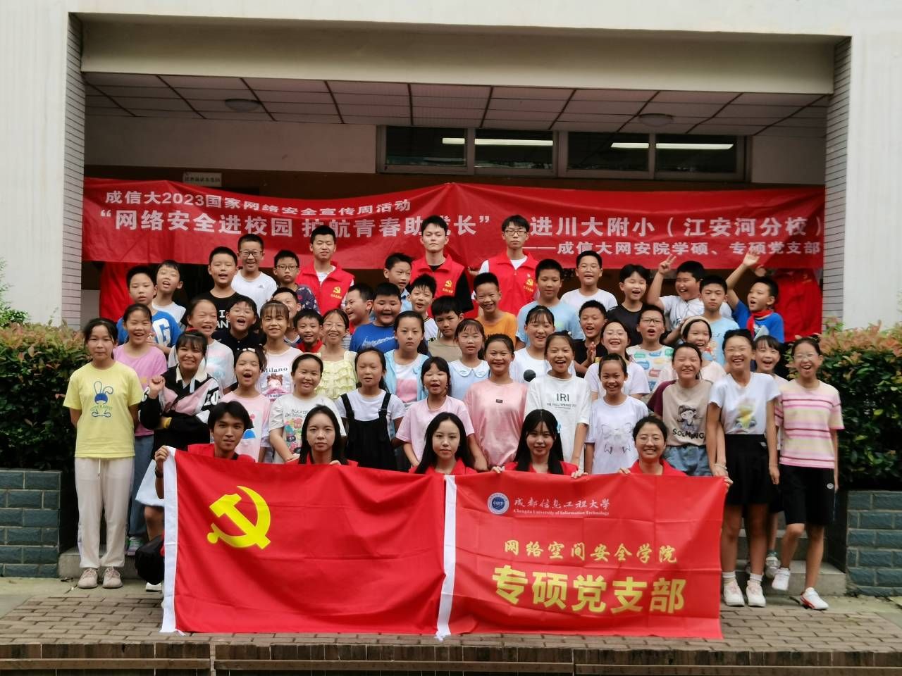 为深入学习贯彻党的二十大精神,深入学习贯彻习近平总书记关于网络强国的重要思想,提高广大青少年的网络安全意识,提升网络安全防范技能,帮助青少年养成良好的上网习惯,树立正确的网络安全观。网络空间安全学院学硕、专硕党支部于2023年9月15日组织了研究生党员志愿者队伍,走进四川大学附属小学(江安河分校)的课堂,进行网络安全宣传青少主题活动。