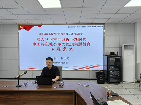 为深入开展学习贯彻习近平新时代中国特色社会主义思想主题教育,2023年6月30日上午,学院党委书记张仕斌在信达楼B409讲授题为“深入学习贯彻习近平新时代中国特色社会主义思想,高质量推进网络空间安全学院建设”的主题教育专题党课。学院党委委员、科级以上干部、党支部书记参加了党课学习。