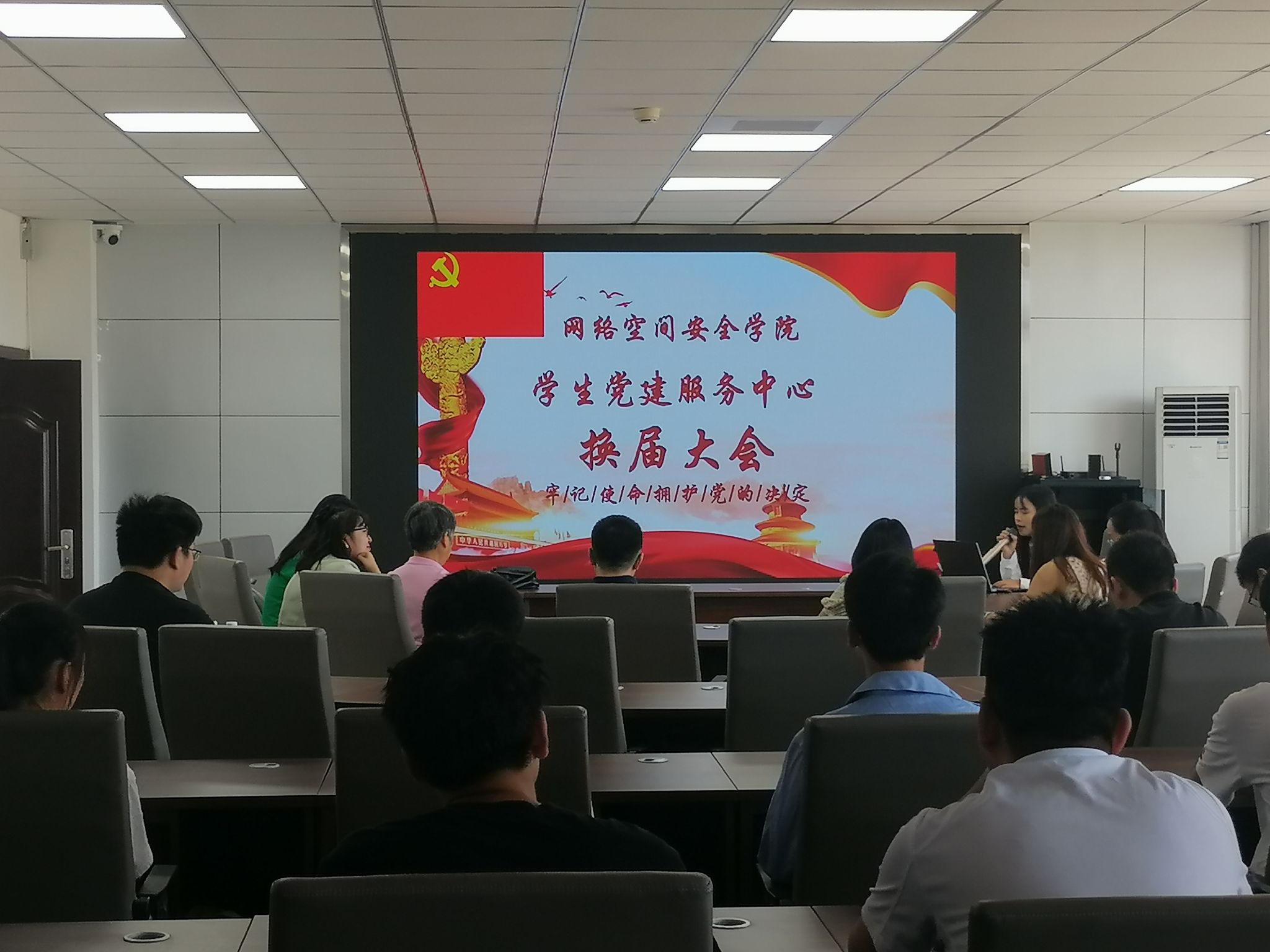 2023年9月21日中午13:00,网络空间安全学院党建服务中心换届大会于信达楼B409顺利召开。学院党委书记张仕斌教授,党委组织员杨臻老师,学生辅导员姜艳老师,贾茜老师,何佩遥老师,张琴老师,以及党建服务中心换届前后的各部门负责人出席了本次会议。会议由余凤同学主持。