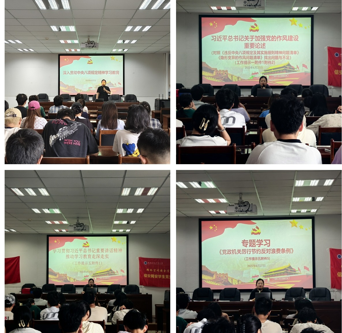 2025年6月27日,网络空间安全学院信安网安学生党支部在A402会议室举行“七一“主题党日活动,庆祝中国共产党成立104周年,并开展深入贯彻中央八项规定精神学习教育。支部书记韩阳、党员代表及入党积极分子参加活动。
