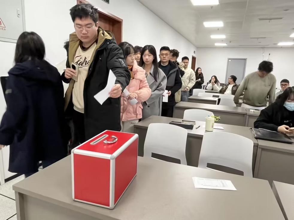 会议第二项,进行支部委员增补选举。本次增补严格遵循党组织相关程序,旨在进一步加强支部建设,提升组织活力。经前期酝酿与推荐,共产生六位支委增补候选人。唐梅同志就选举程序及候选人基本情况作了说明。选举采取无记名投票方式,在监票人监督下,全体党员秉持公平、公正、公开原则,有序完成投票。经统计,刘静雯、李虹雨、唐佳佳、谢林希四位同志当选为新一届支部委员会委员。唐梅同志代表支部向新当选委员表示祝贺,希望他们认真履职,积极作为,共同推动支部工作高质量发展。