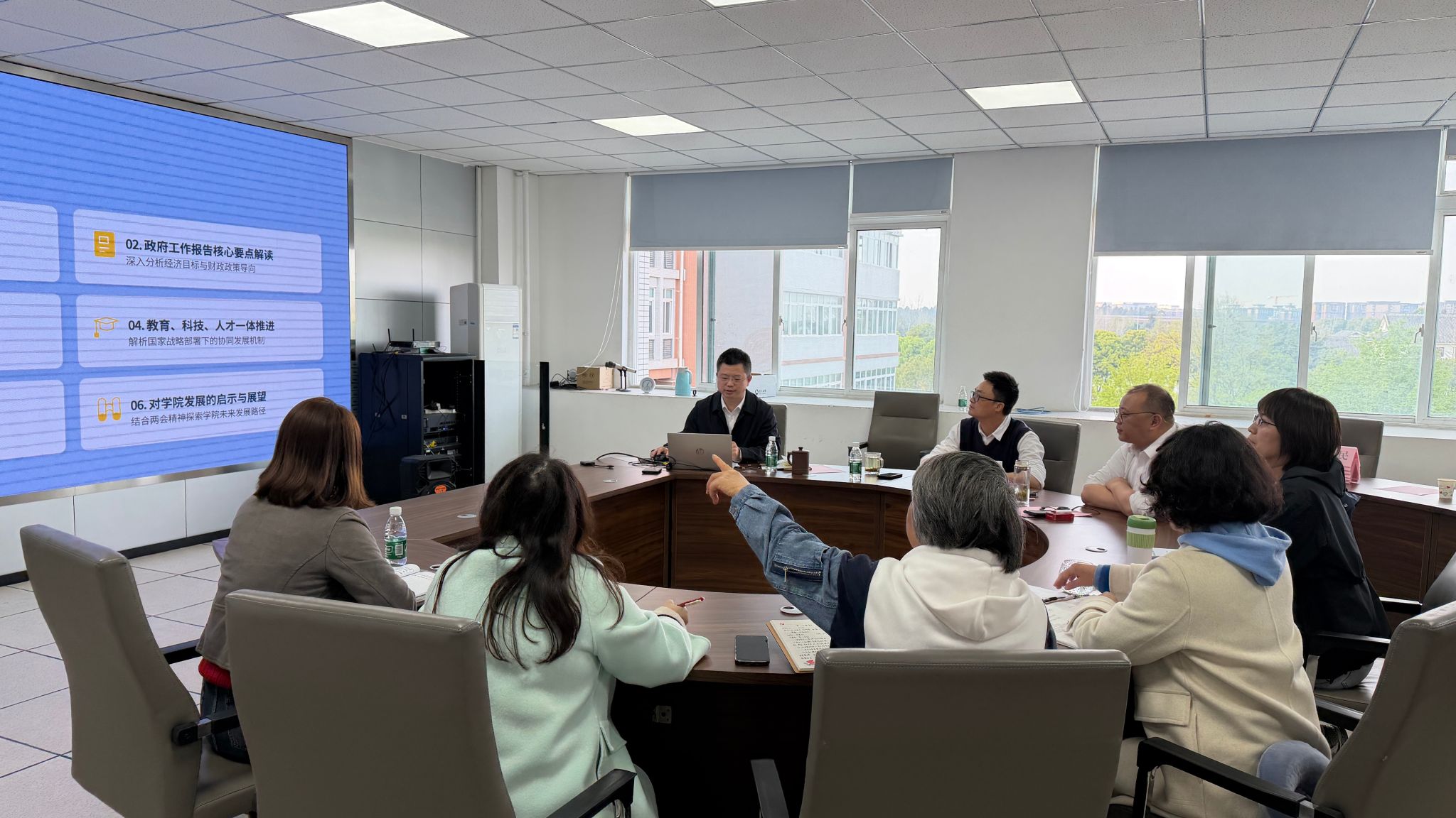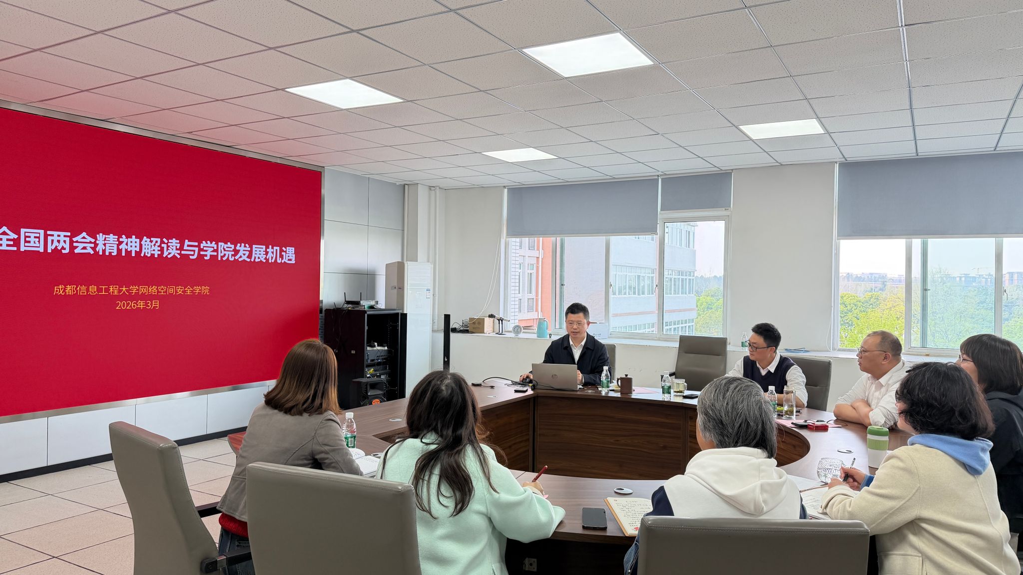 会后,学院全体党委委员在陈智勇的带领下,开展了主题为“2026年全国两会精神解读与学院发展机遇”的学习教育。