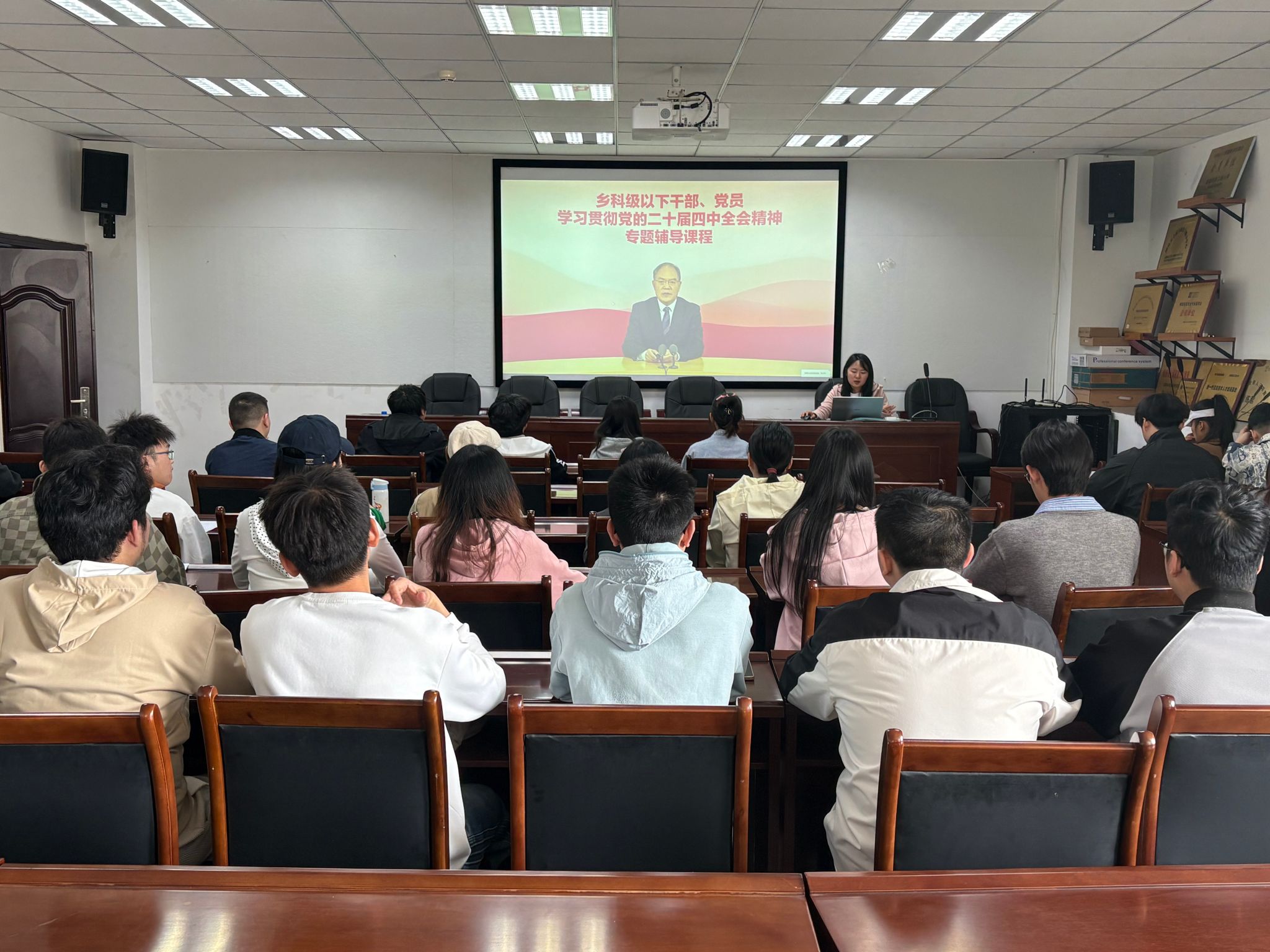 会上,张琴书记首先带领全体党员深入学习了党的二十届四中全会精神”,通过集中学习,党员们深刻领会了全会关于坚持和完善中国特色社会主义制度、推进国家治理体系和治理能力现代化的重大意义,进一步坚定了投身科技强国建设的理想信念,明确了支部在推动专业发展和学风建设中的责任。