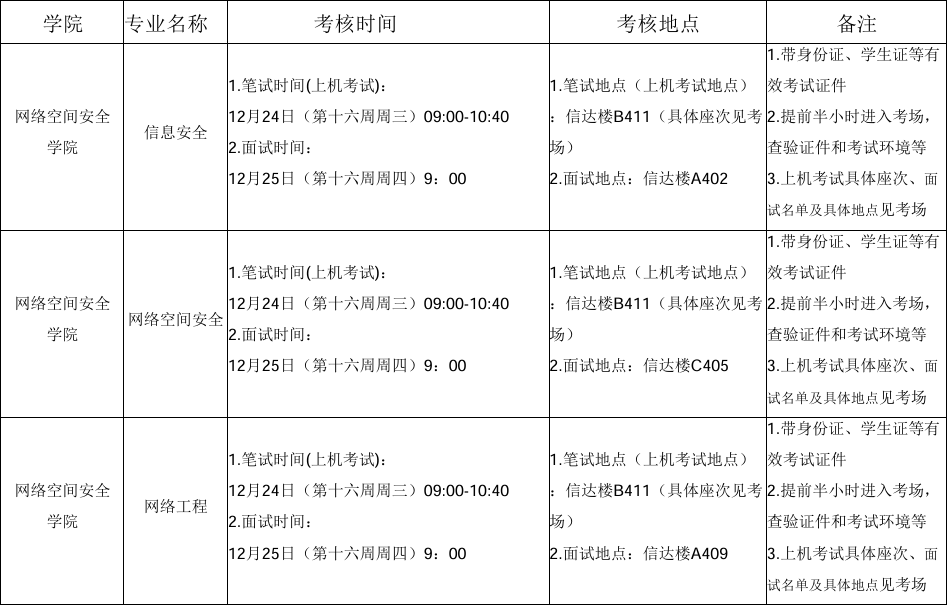网络空间安全学院2025年统一转专业考核安排