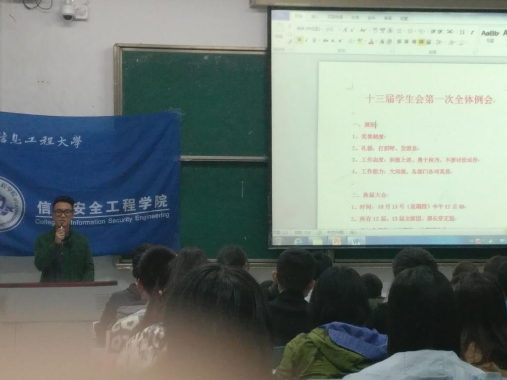 信息安全工程学院第十三届分团委学生会第一次全体例会圆满举行