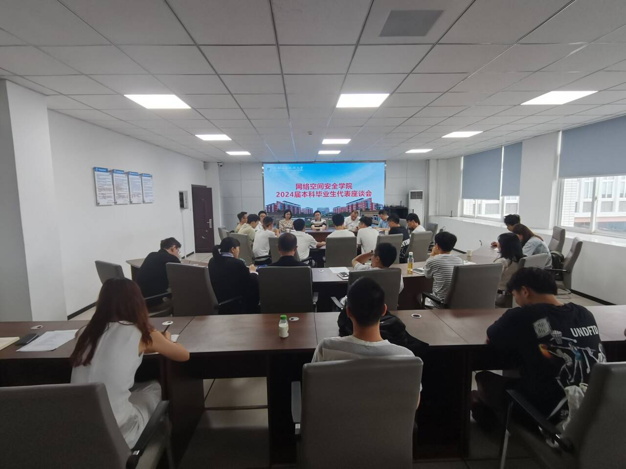 6月26日上午,网络空间安全学院2024届本科毕业生代表座谈会在双中心B409会议室召开。学院党委书记张仕斌,院长周益民,党委副书记陈智勇,副院长何林波,副院长昌燕,学院各教研室主任,全体毕业生辅导员以及2024届本科毕业生代表参加了此次座谈会。会议由学院党委副书记陈智勇主持。