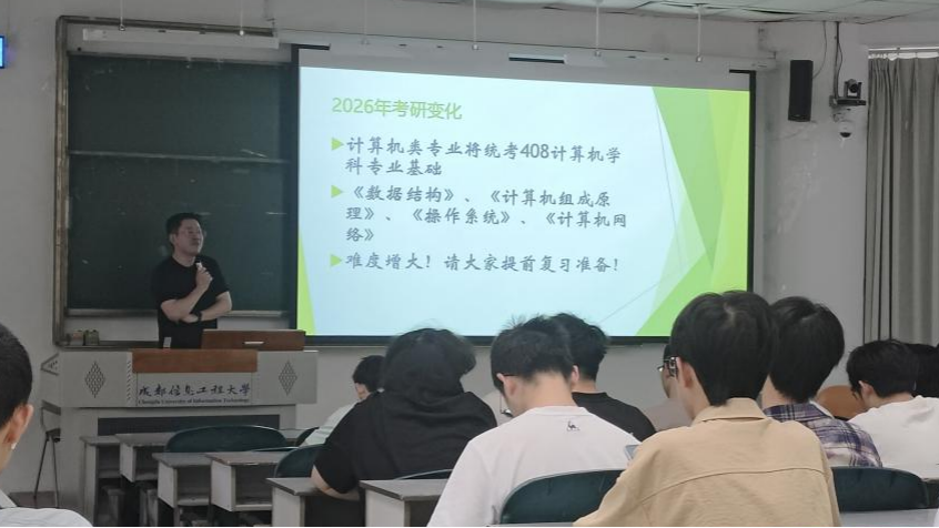 大会伊始,杨帆为同学们带来翔实的学院考研与就业分析。他细致解读了当前学院考研的整体形势、各专业报考及录取情况,同时分享了往届毕业生在信息安全、网络空间安全领域的就业去向,涵盖企业、事业单位等不同方向,为同学们提供了清晰的职业发展参考。此外,杨帆根据22级人才培养方案、课程大纲,介绍了本学期后续的教学安排、实践课程设置,帮助同学们提前规划学习进度。呼吁同学们未雨绸缪,做好充足准备。