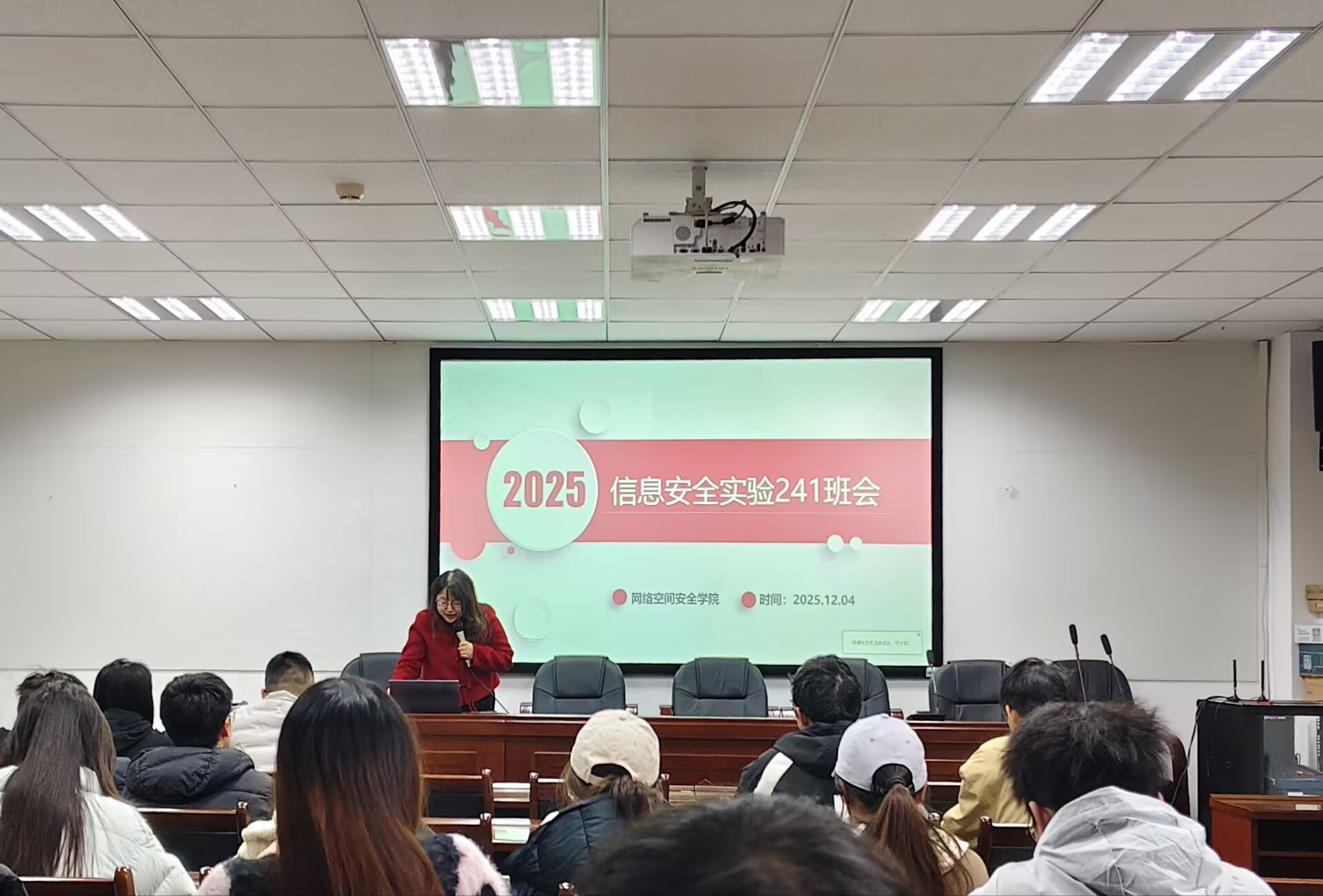 为助力大二实验班快速凝聚向心力、明确专业发展方向,成都信息工程大学网络空间安全学院信息安全实验241班班会于12月4日在信达楼A402顺利召开。本次班会由实验班辅导员姜艳老师主持,特邀两位专业班导师——白杨副教授、李沁东博士出席,实验班全体同学参加。