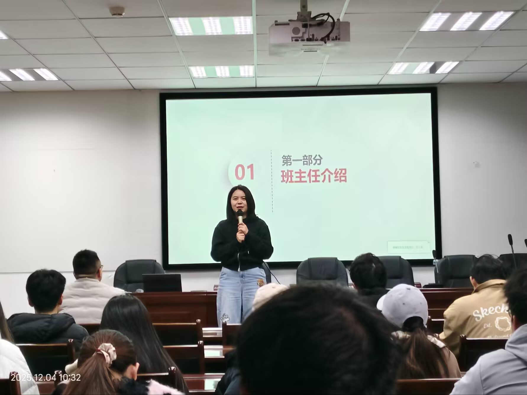 随后,姜老师详细介绍了实验班的基本情况。作为学院重点打造的特色班级,实验班经大一学年综合考评遴选组建,整体学业基础扎实——班级平均学分绩点高于本学科门类平均值,班级约35.5%的同学荣获校级及以上奖学金。在能力特长方面,班级人才储备多元,既专业技能竞赛中获奖的“学术达人”,也有深耕学生工作、策划过多场校级活动的“组织能手”。辅导员强调,希望同学们主动发挥优势,在互助协作中实现共同提升。