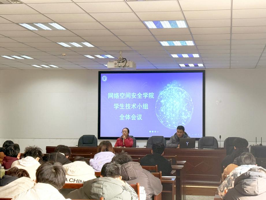 为进一步规范学科竞赛管理,强化团队安全意识,明确寒假期间能力提升目标,2026年1月12日,网络空间安全学院召开学生技术小组全体会议。学院竞赛服务中心主任段光明老师、辅导员贾茜老师及学生技术小组全体成员参加会议,会议围绕实验室安全、专业能力提升、竞赛相关规范等核心内容展开部署。