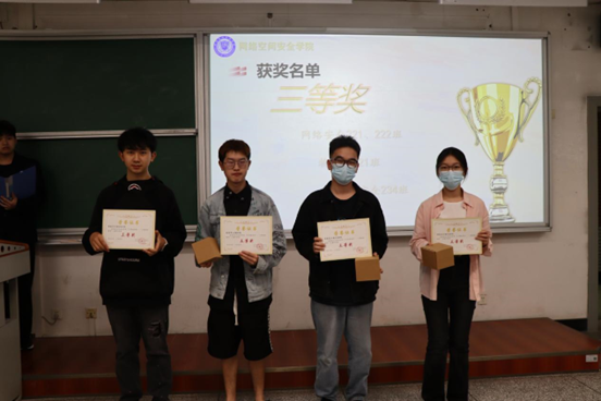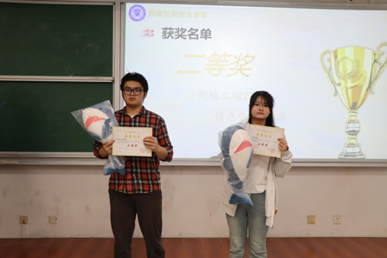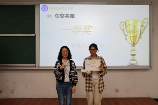 经过激烈角逐,最终评选出6个获奖班级,获奖名单如下,一等奖:信安221;二等奖:信安234班、网工222班;三等奖:网安221、网安222班、物联网221班、网安234班。颁奖典礼上,学生科副科长贾茜老师为获奖班级颁奖,以表彰他们在比赛中的出色表现。