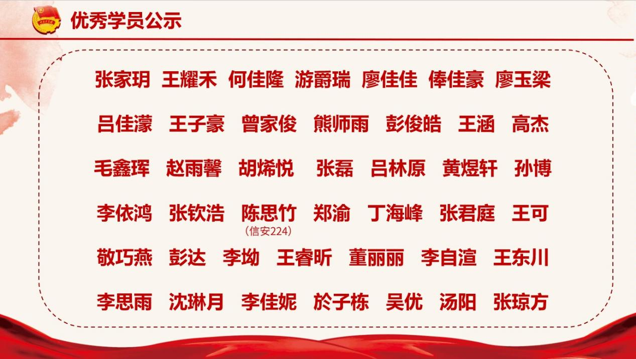 随后,主持人公布了此次团课的优秀学员名单并进行表彰,优秀学员名单如下图所示。