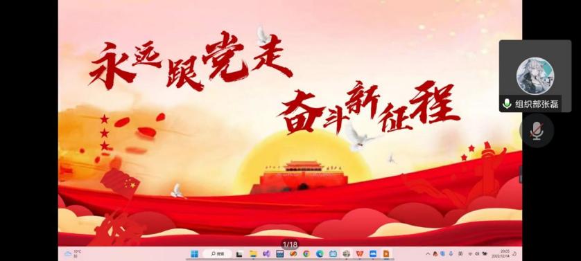 为进一步加强爱国教育,弘扬爱国主义精神,增强民族文化自信心与自豪感,强化对青年团员的思想政治引领,引导动员青年团员学习党的二十大精神,我院组织部于12月14日在线上开展了本次二级团校培训班的第三次团课。本次课程由组织部李圣民同学主持,内容上分为“爱国主义”和“深入学习贯彻党的二十大精神”两大板块,分别由组织部沈琳月同学和张磊同学讲解。