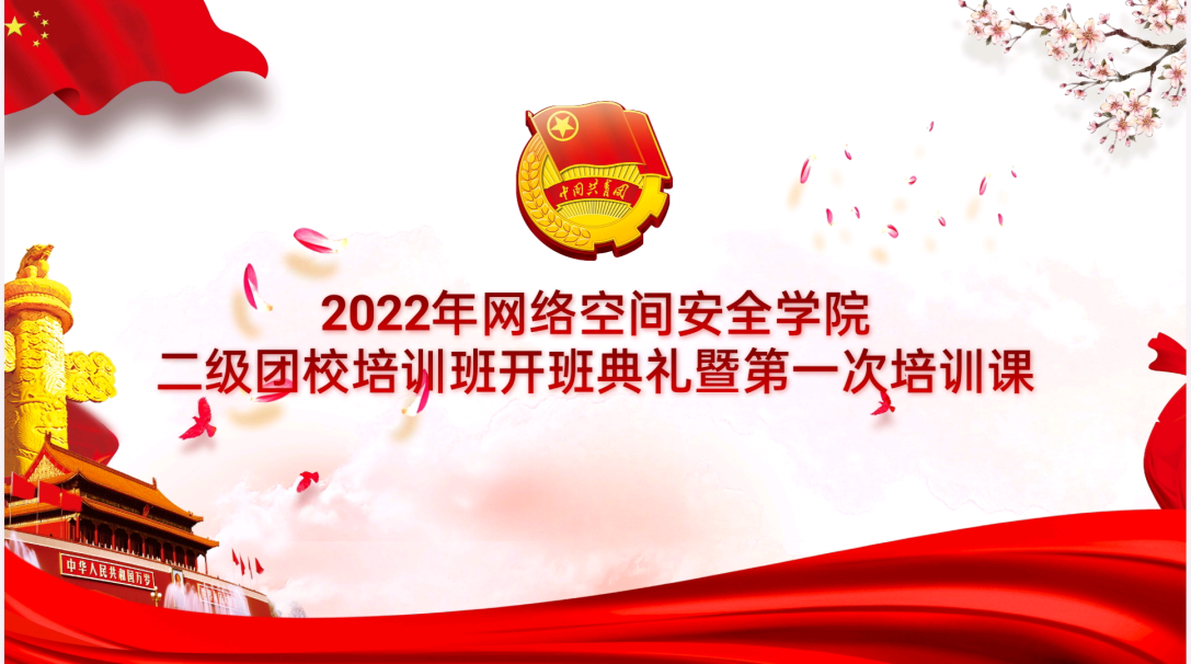 为进一步壮大团员队伍,增强团组织凝聚力,激励品学兼优的学生进一步学习贯彻党的新时代精神。2022年11月29日19点30分,网络空间安全学院二级团校开班典礼暨第一次培训课于线上成功举行,学院团委副书记向星睿、入团积极分子以及各班团学干部参加了本次开班典礼,组织部杨柳逸春同学主持本次开班典礼。