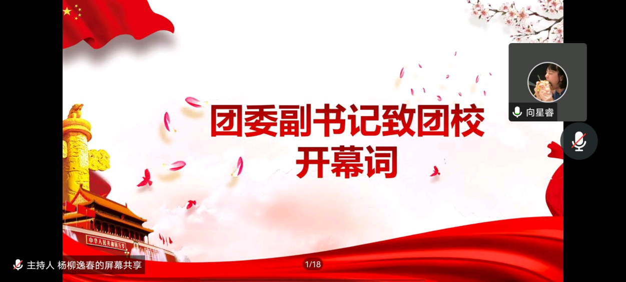 纵使疫情让我们无法在线下见面,但我们依旧保持着对党、对团的热爱。本次开班典礼在杨柳逸春精彩的主持中顺利召开,学院代表陈玉婷带领全体学员重温入团誓词后,学员齐唱团歌,团委副书记向星睿为全体学员致培训开幕词,组织部负责人胡越围绕“中国共产主义青年团知识”的主题展开第一次团课。
