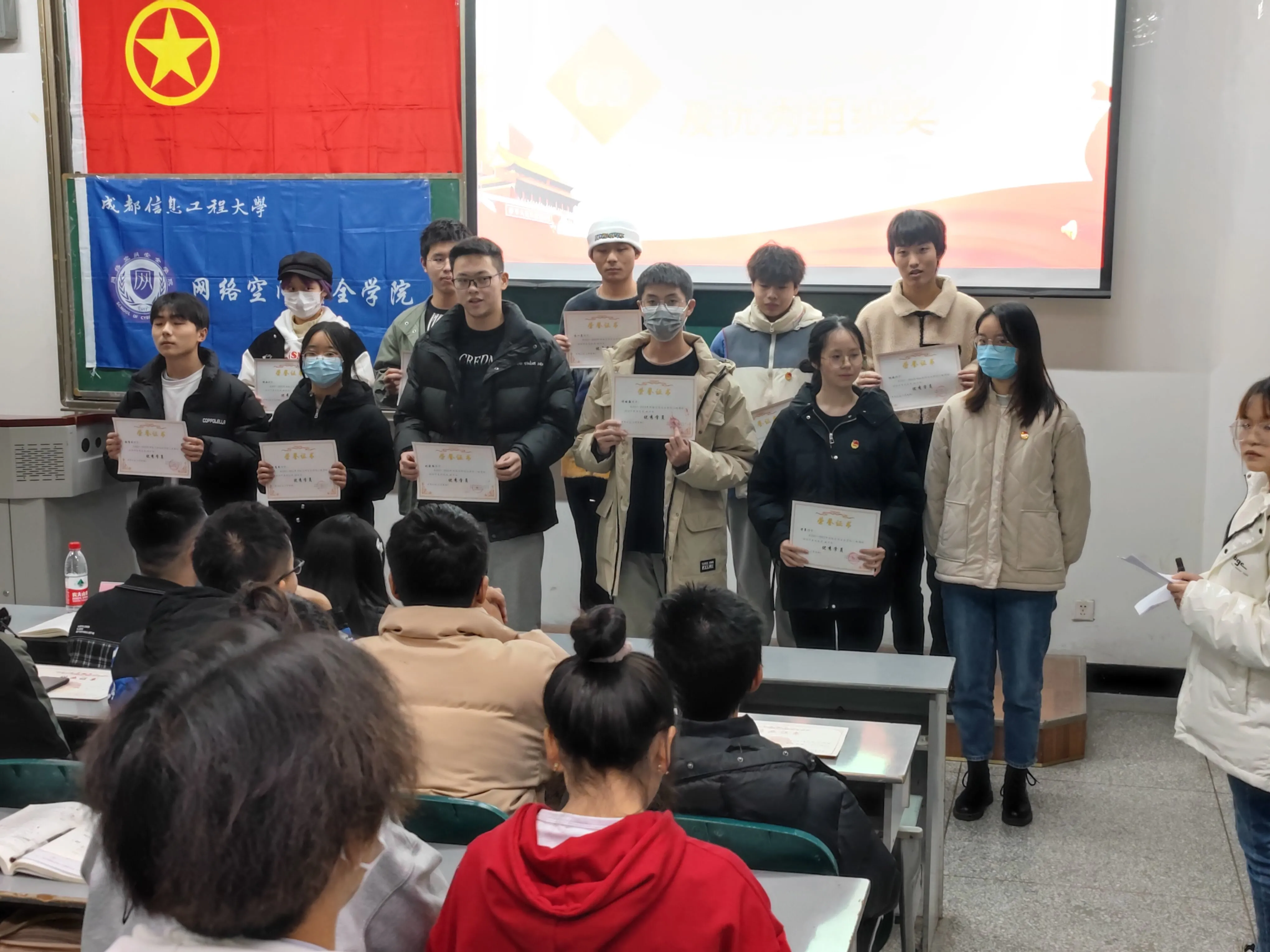 结业典礼在庄严的中国共青团团歌中拉开帷幕,全体参会人员起立齐唱团歌。随后,团校对各优秀学员进行了表彰,并由李雨虹、邢高杰以及网络空间安全学院团委组织部负责人谢姿宇为他们颁奖。同时,团课还对优秀组织进行了表彰,并由网络空间安全学院团委组织部负责人王又卉进行颁奖。