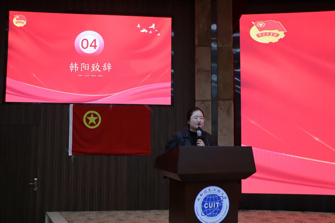 仪式在庄重的氛围中拉开帷幕。团员代表张思彤带领全体学员重温入团誓词,学员们面向团旗,右手握拳,庄严宣誓。随后,全体齐唱团歌,展现出昂扬的精神风貌。