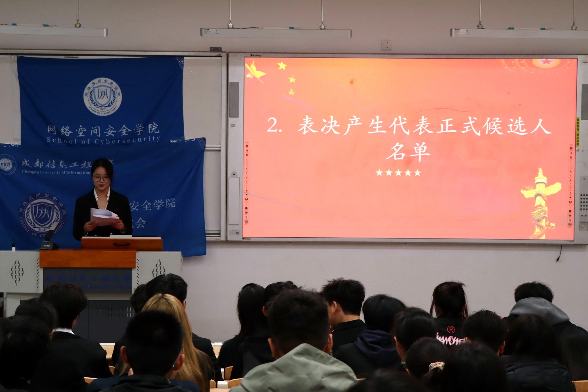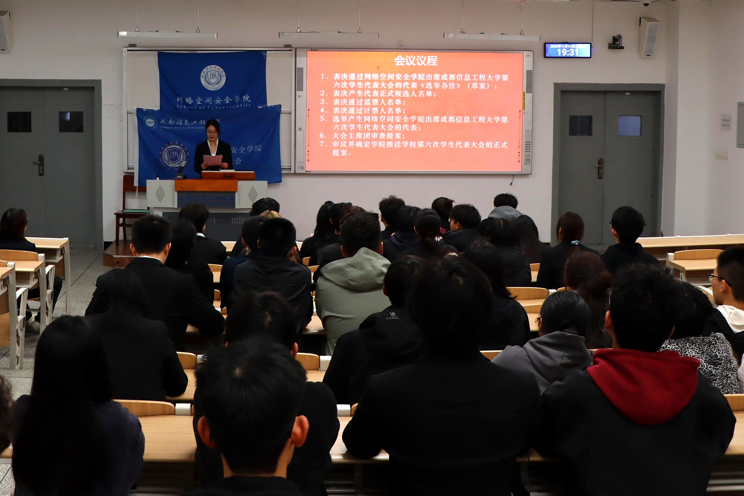 近日,网络空间安全学院学生代表大会顺利召开。会议核心任务是选举产生出席成都信息工程大学第六次学生代表大会代表候选人,并审议确定提交学校的正式提案。大会应到62人,实到57人,会议有效。