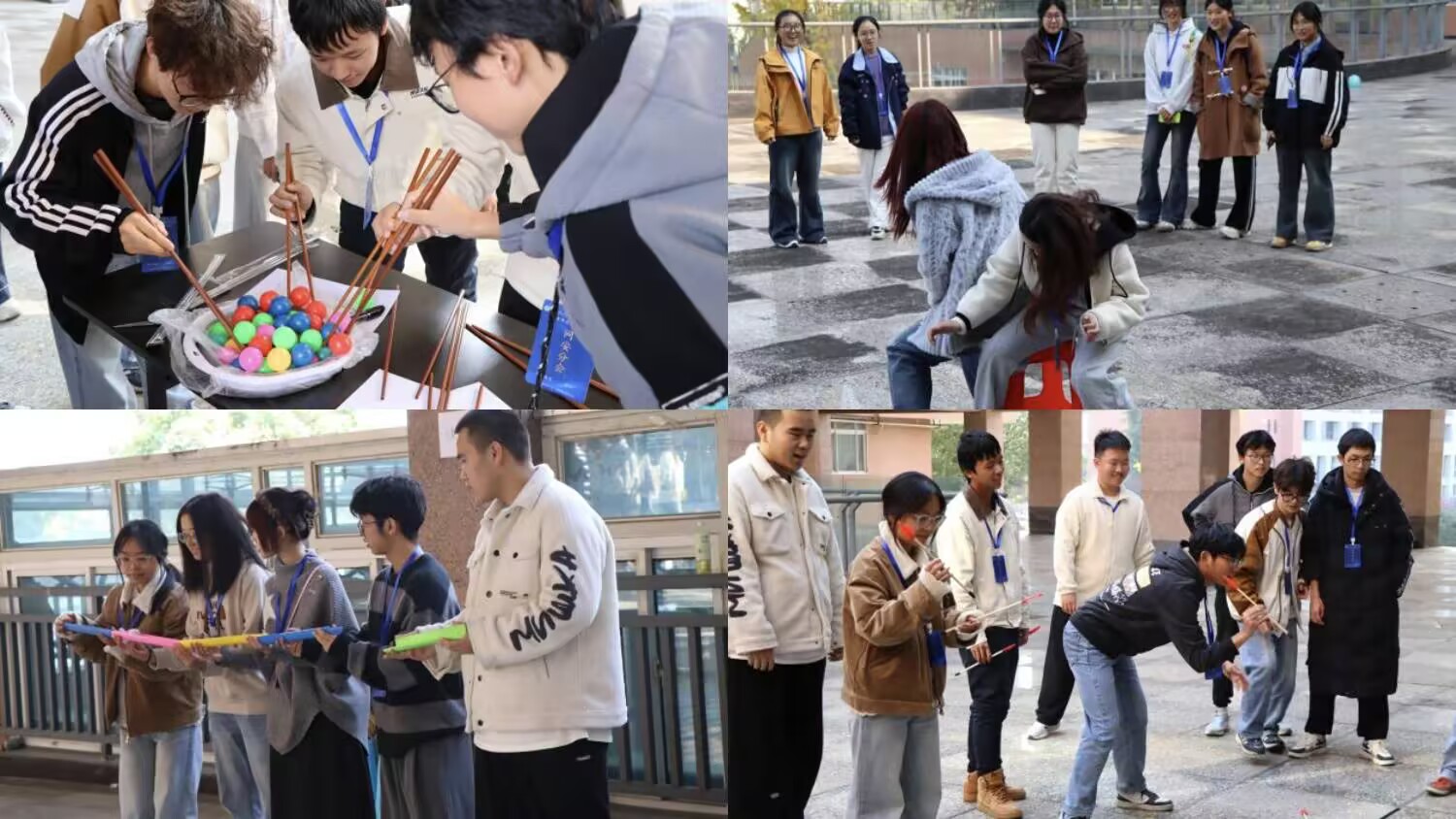 本次活动精心设置了10项团队游戏,涵盖竞技、协作与趣味等多个方面。在“筷子‘捞金’”“抢椅子”“珠行万里”“投壶竞逐”等项目中,同学们配合默契,展现出敏捷的反应力与出色的团队协作能力,现场掌声与欢笑不断。