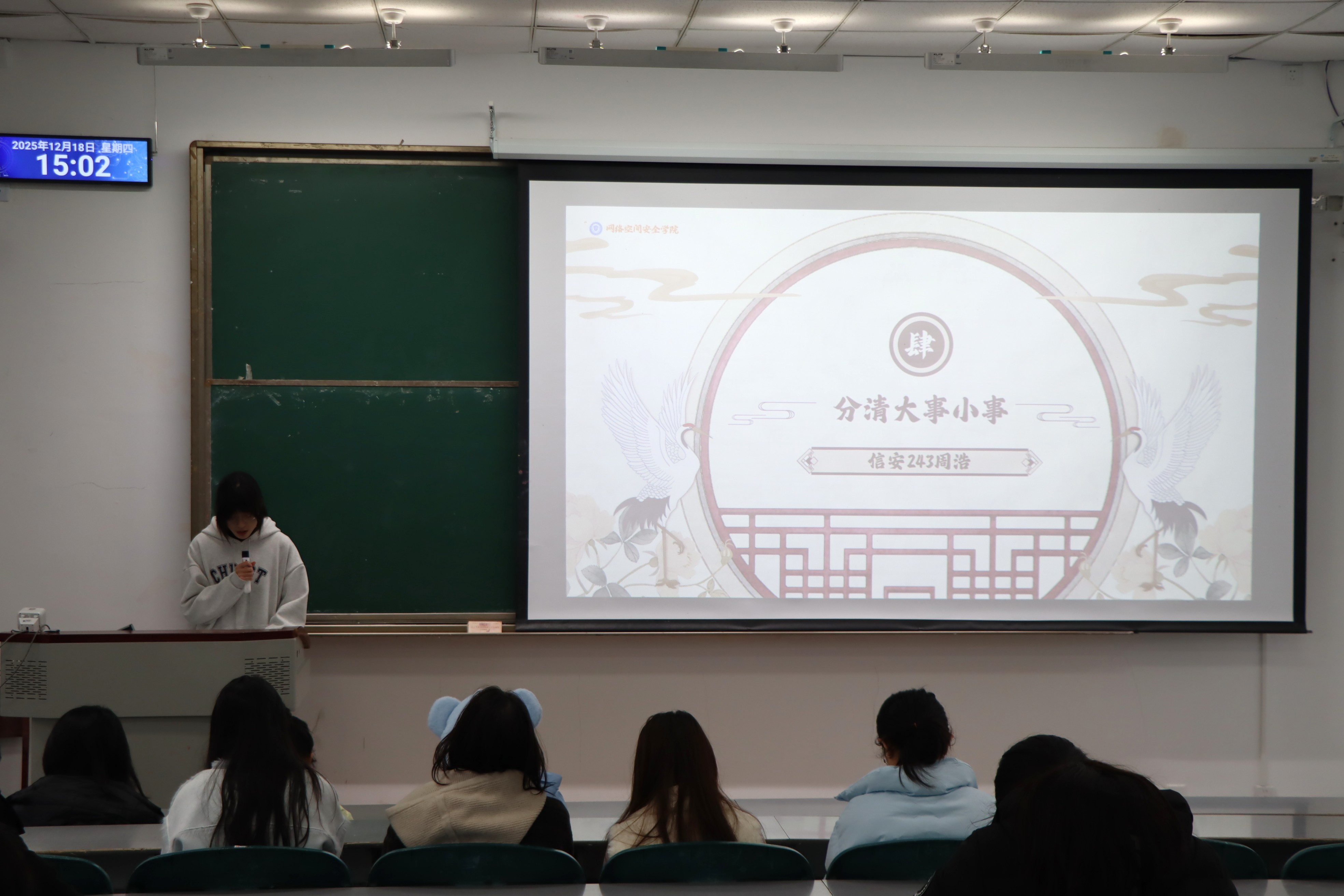 在党员分享环节,信安234班袁莉结合自身经历,解答了“为什么入党”“如何入党”等同学们普遍关心的问题,并强调将理论学习与社会实践、志愿服务相结合的重要性,为有意向入党的同学指明了行动方向。
