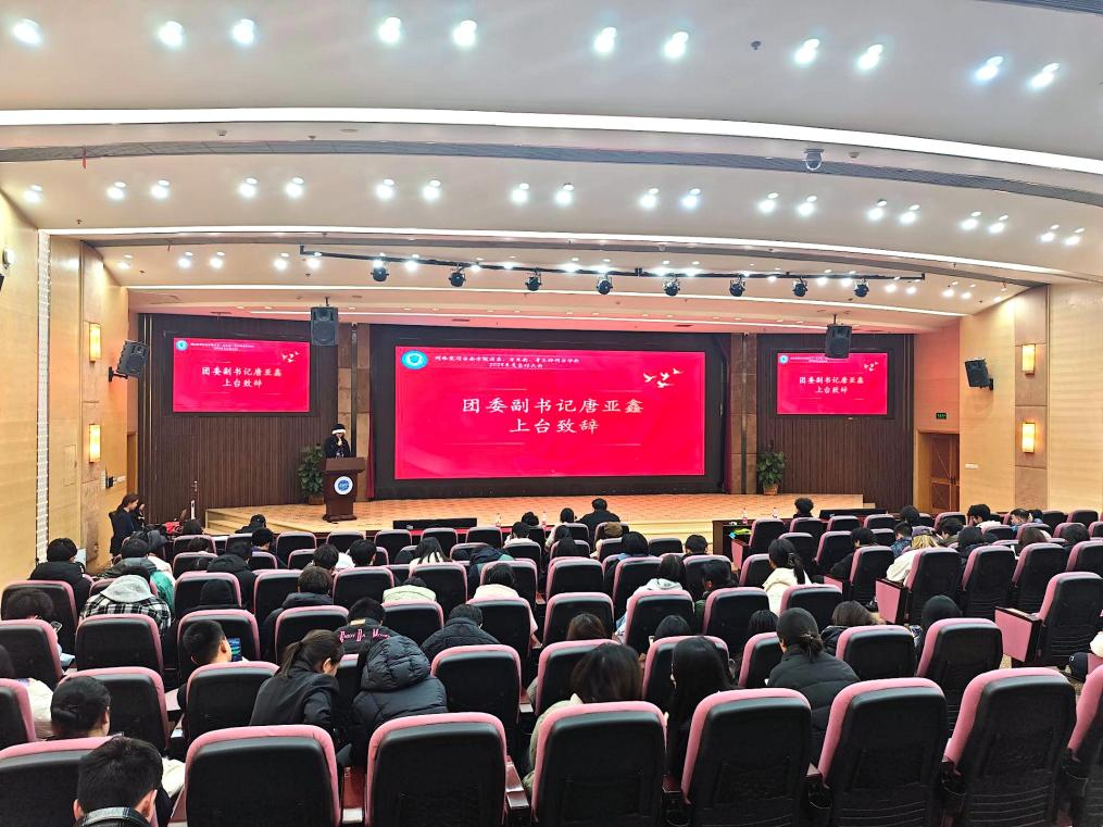 随后,学院团委副书记唐亚鑫代表主席团作2025年度团学工作整体总结报告。报告全面回顾了学院团委、学生会、青志协网安分会一年来在基层团建、团学管理、新媒体建设、校园文化活动以及社会实践与志愿服务等方面取得的显著成绩,同时深入剖析了在制度建设、内部管理、宣传严谨性、活动创新及执行落实等方面存在的不足,并提出了具体的改进方向与展望。